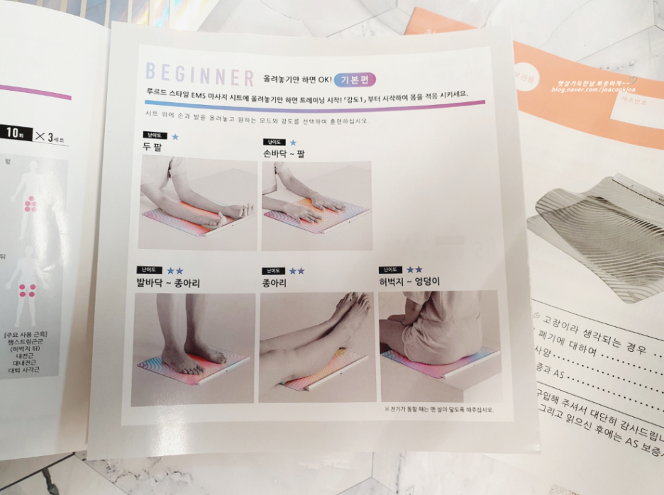 EMS 마사지기 설명서에는 여러 가지 방법이