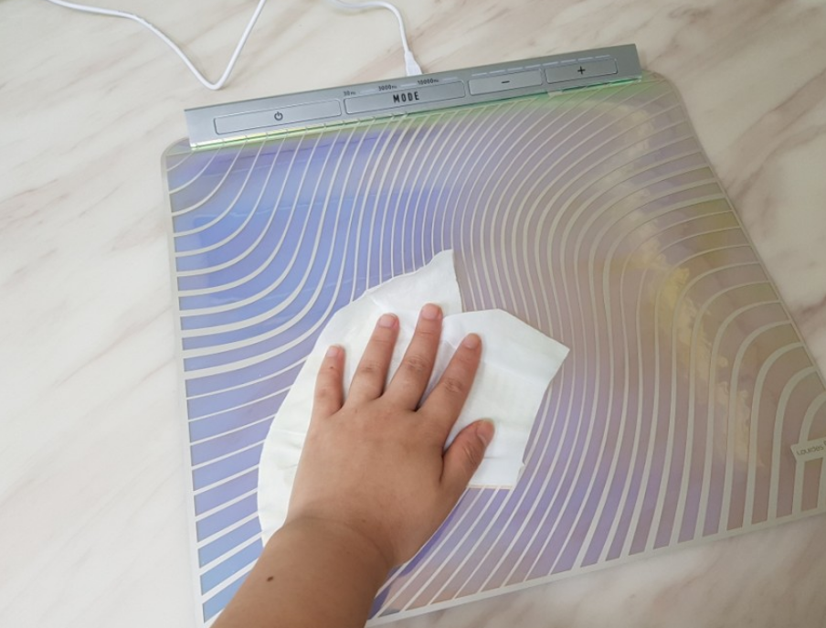 시트에 분무기로 물을 뿌려주었어요!