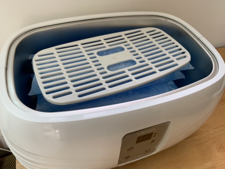 먼저 왁스를 용해기에 넣어주는데 원하는대로 갯수를 정하면 돼요. 개인적으로는 4개가 적당했고 한가지 팁이 있다면 판을 그 위로 올려놓으면 느낌상 조금 더 빨리, 균일하게 녹는 것 같더라구요. 그 후 오른쪽에 있는 주황색 스위치를 켜주고 곧바로 정면에 보이는 파워 버튼을 눌러주면 되는데 숫자 옆에 작은 빨간색 점이 깜빡거리는게 보이면 제대로 녹고 있다는 표시에요.