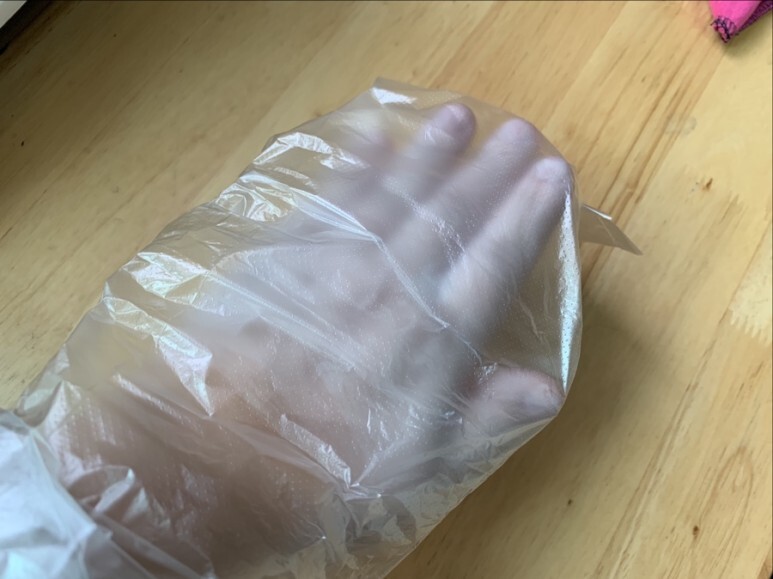 투명하게 다 녹으면 이제 손을 4~5번 정도 넣었다가 뺐다가를 반복해주는데 두꺼울수록 오래가고 좋다고 해요. 그 후 겉을 살짝 굳히고 비닐팩으로 덮어주고 손커버까지 끼고 20분 정도 찜질을 해주고 떼어주면 되는데 한 두번 정도는 재사용을 할 수 있지만 청결상 원치 않는다 싶으면 버리고 남아있는것만 다시 쓰세요. 저도 그렇게 쓰면서 양이 줄어들면 하나 더 넣어서 쓰고 있답니다.
