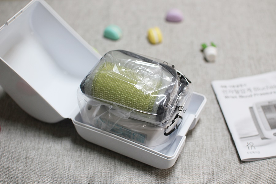 아침은 출근하니 오전과 오후에는 회사에서 측정하고 퇴근하고는 바로 운동을 가니 이동하는 차량 안에서 측정하고 있어요. 가끔은 출장을 가게 되어도 손목형이다 보니 어디서든 잴 수 있었죠. 또한 케이스가 있어서 넣어서 다니고 있답니다. 사이즈도 한손에 쥘 수 있는 크기에 어디에 두어도 될만큼 부피도 작은 편이라 좋았죠.