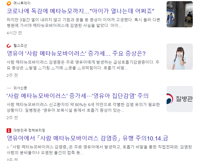 요새는 뉴스 보니까 메타뉴모 바이러스도 난리인거 있죠.