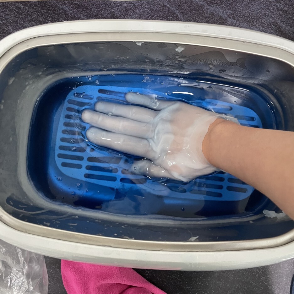 어느 정도 준비가 됐다 싶으면 손 덮개와 비닐팩을 옆에 놓고 손가락을 먼저 담궈봅니다.