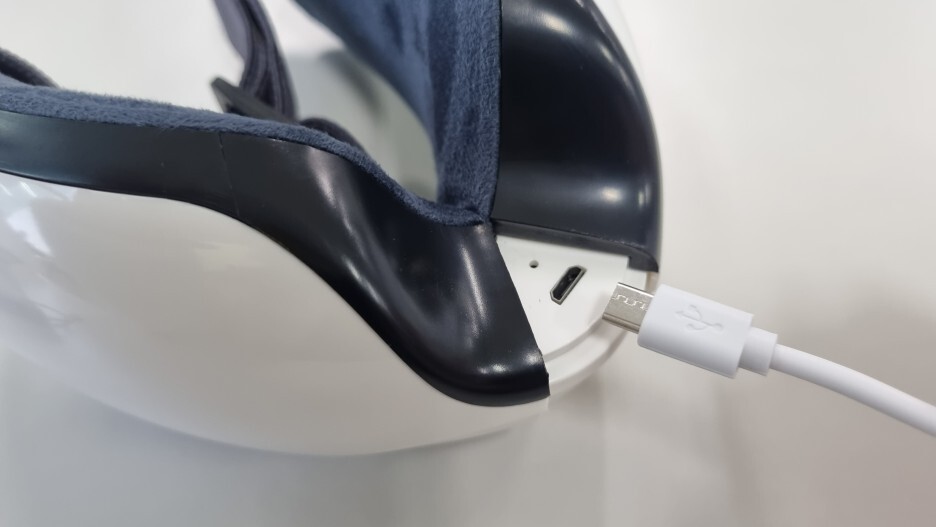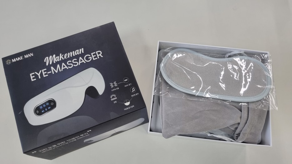 열어보면 충전기, 수면 안대, 온열 눈마사지기
