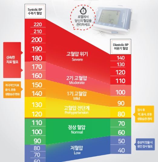 그래서 개인적으로 목표한 수치를 설정할 수 있는 의료용 가정 혈압측정기를 갖고 있으면 도움이 되며, 숫자를 일일히 확인하기 보단 색상만으로도 간편히 정상인지 비정상인지 구분이 쉬운 기계면 어르신들도 관리하기 매우 편리해집니다.