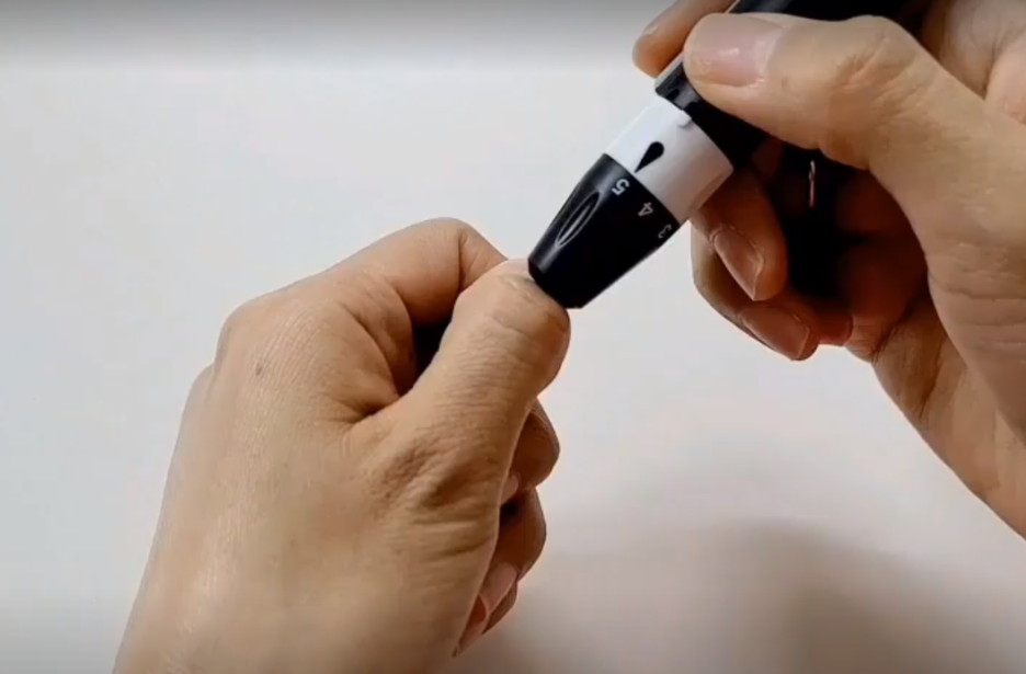 피를 뽑으려면 먼저 채혈기를 딸깍 소리